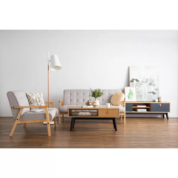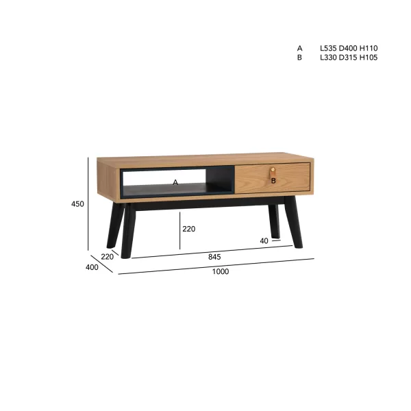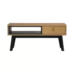| This coffee table adds a playful yet refined touch with its mix of natural, black, and blue tones. Featuring a natural ash veneer top, black-finished oak legs, and a bold space blue lower shelf, it offers both style and function. The open shelf provides practical storage or display space, making it a standout piece in contemporary or eclectic interiors. |