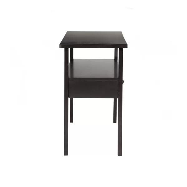 This console table offers a rich, elegant look with its dark chestnut finish and refined silhouette. The veneered top provides a smooth, durable surface, while the solid Malaysian oak legs ensure lasting stability. Perfect for entryways, living rooms, or behind sofas, it brings both function and timeless sophistication to any interior. |
