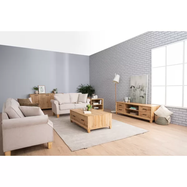 This coffee table showcases a warm and rustic look with its Wotan oak finish and clean, practical design. The combination of solid Malaysian oak legs and a durable laminated board body ensures stability and long-lasting use. With its spacious surface and natural tones, it complements a variety of interiors, from modern farmhouse to contemporary living spaces. |