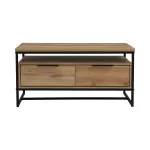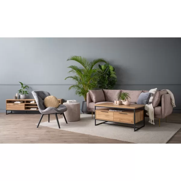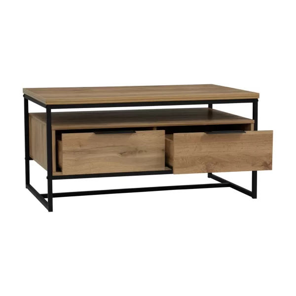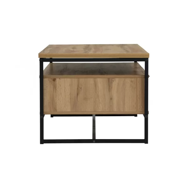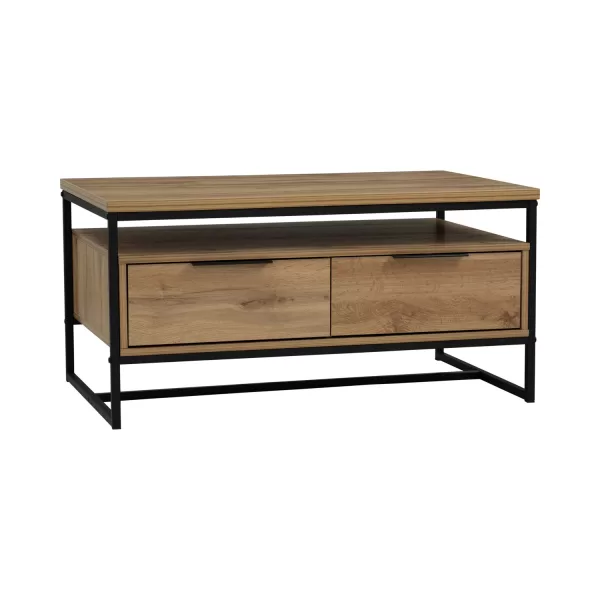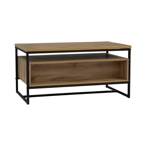 A stylish and functional coffee table that combines the industrial look of metal legs with the warm texture of laminated wood. Its clean lines and modern profile make it a versatile piece, suitable for a variety of living room interiors. |